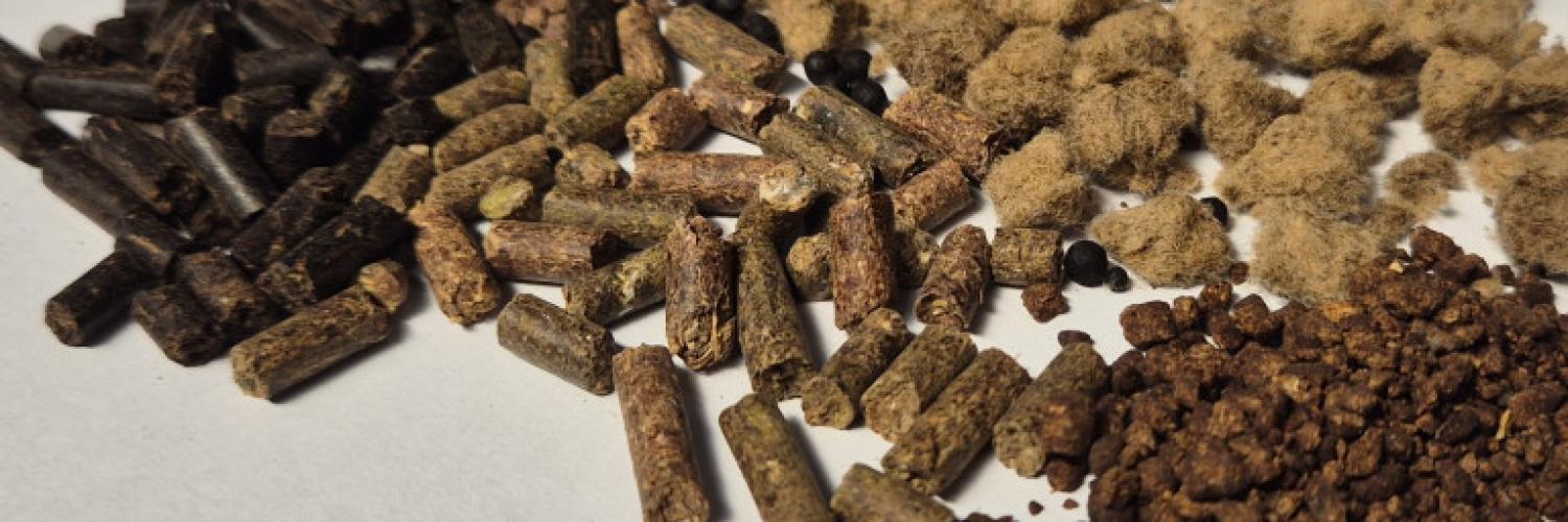 • Voor een flexibele toepassing is drogen en persen tot een korrel noodzakelijk.