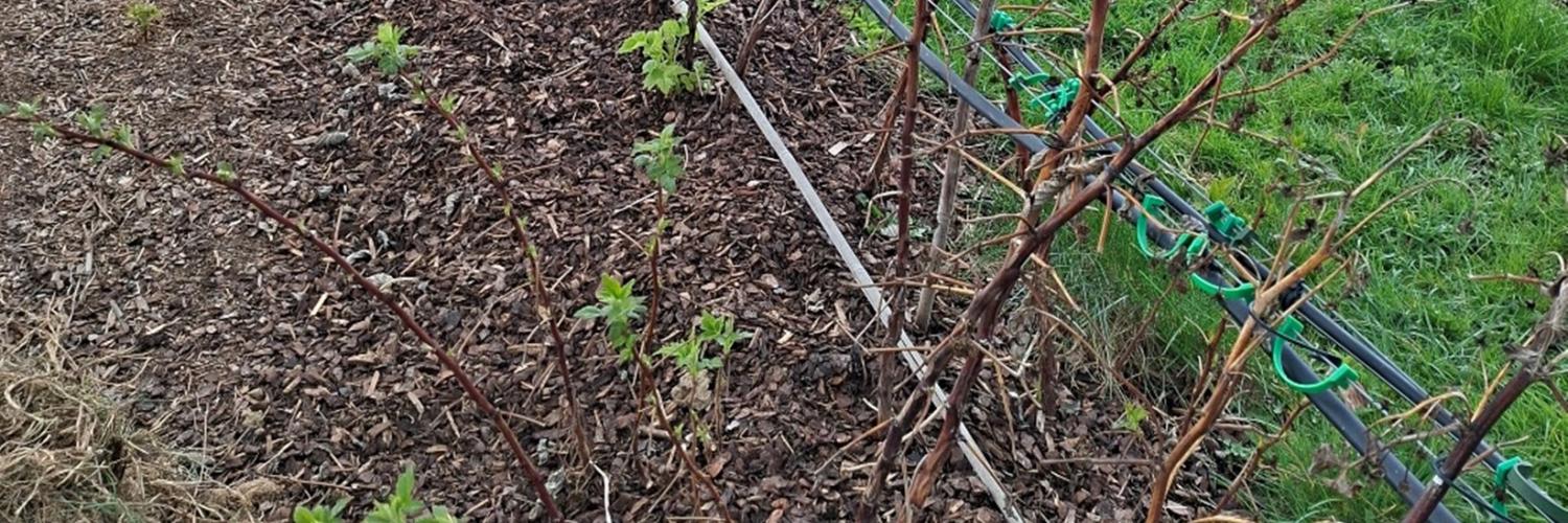 - Revitaliseren van bestaande herfstframboos Kwanza met verschillende doseringen Johnson-Su compost, ingewerkt in de houtsnippers.